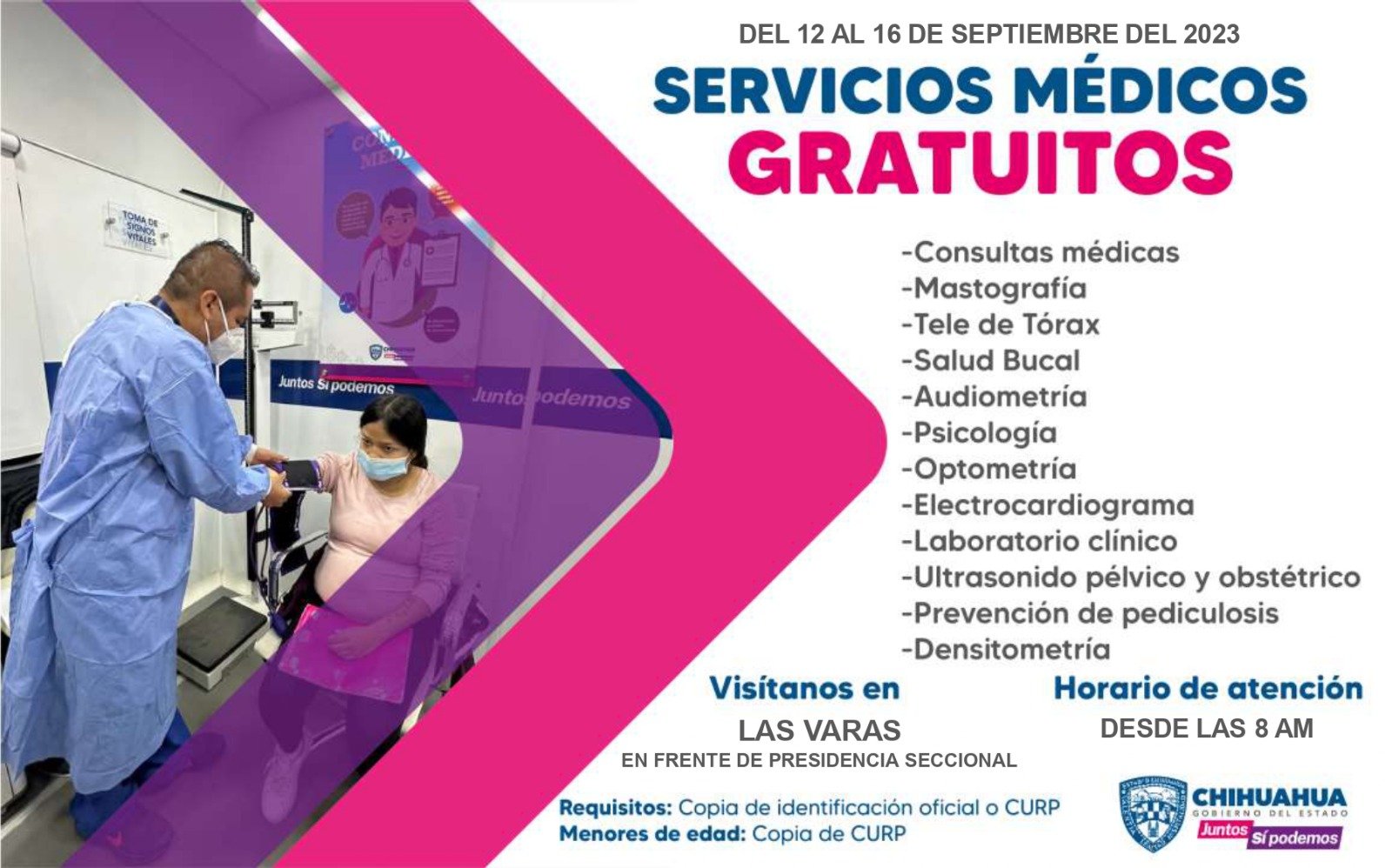 El Gobierno Municipal de Saucillo en coordinación con la Secretaría de Salud de Gobierno del Estado, invitaron a la población en general a aprovechar los servicios médicos gratuitos que se estarán ofreciendo en la localidad de Las Varas.