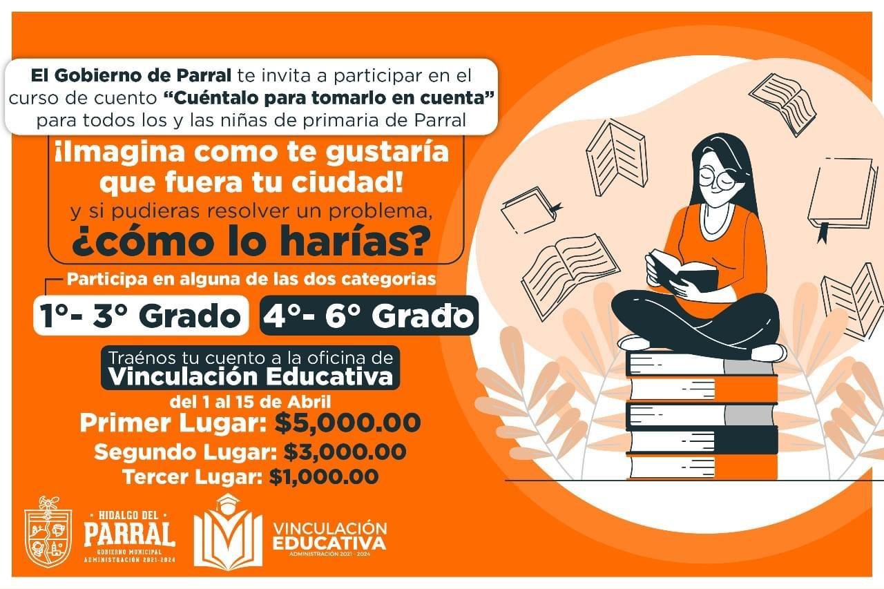El gobierno municipal de Parral invita a todas las niñas y niños de primarias a participar en el concurso de cuento “Cuéntalo para tomarlo en cuenta”.