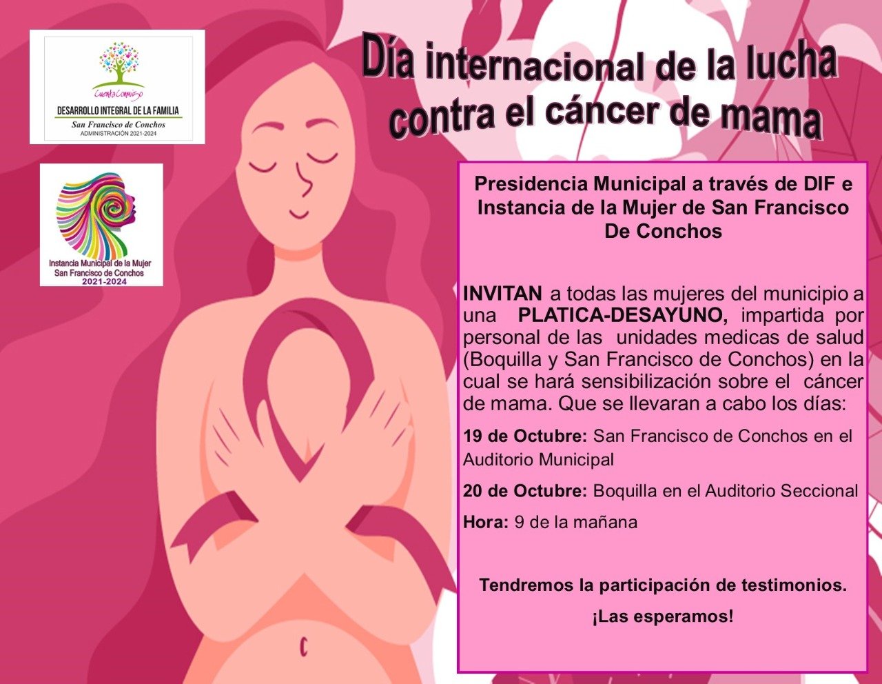 Con la finalidad de conmemorar el día internacional de la lucha contra el cáncer de mama, la presidencia municipal realizará un desayuno para las mujeres del municipio.