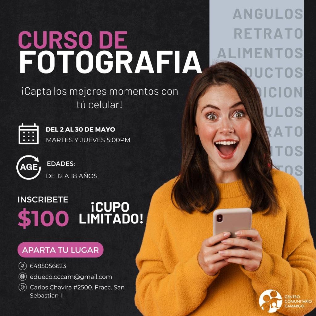 El Centro Comunitario Camargo hizo la invitación a los jóvenes a inscribirse al curso de fotografía con celular.