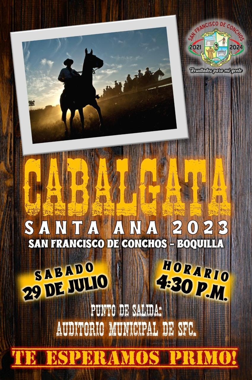 El Gobierno Municipal de San Francisco de Conchos invitó a la gran cabalgata Santa Ana 2023, la cual se llevará a cabo el próximo sábado 29 de julio-.