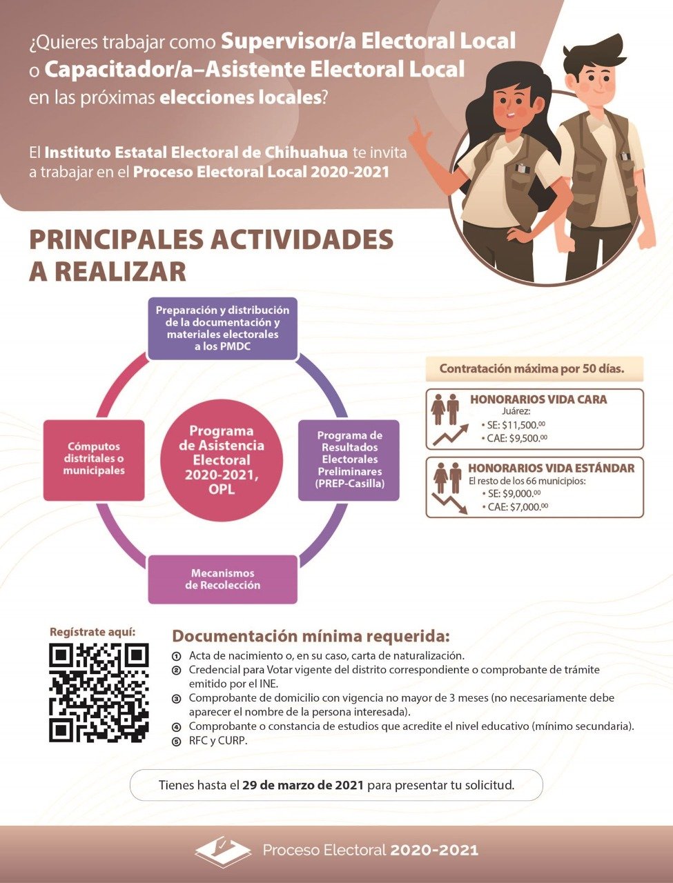 Chihuahua, Chih.- Ya está abierta la convocatoria para registrarse y trabajar como supervisor/a electoral (SE) o capacitador/a-asistente electoral (CAE), en el proceso electoral local 2020-2021.