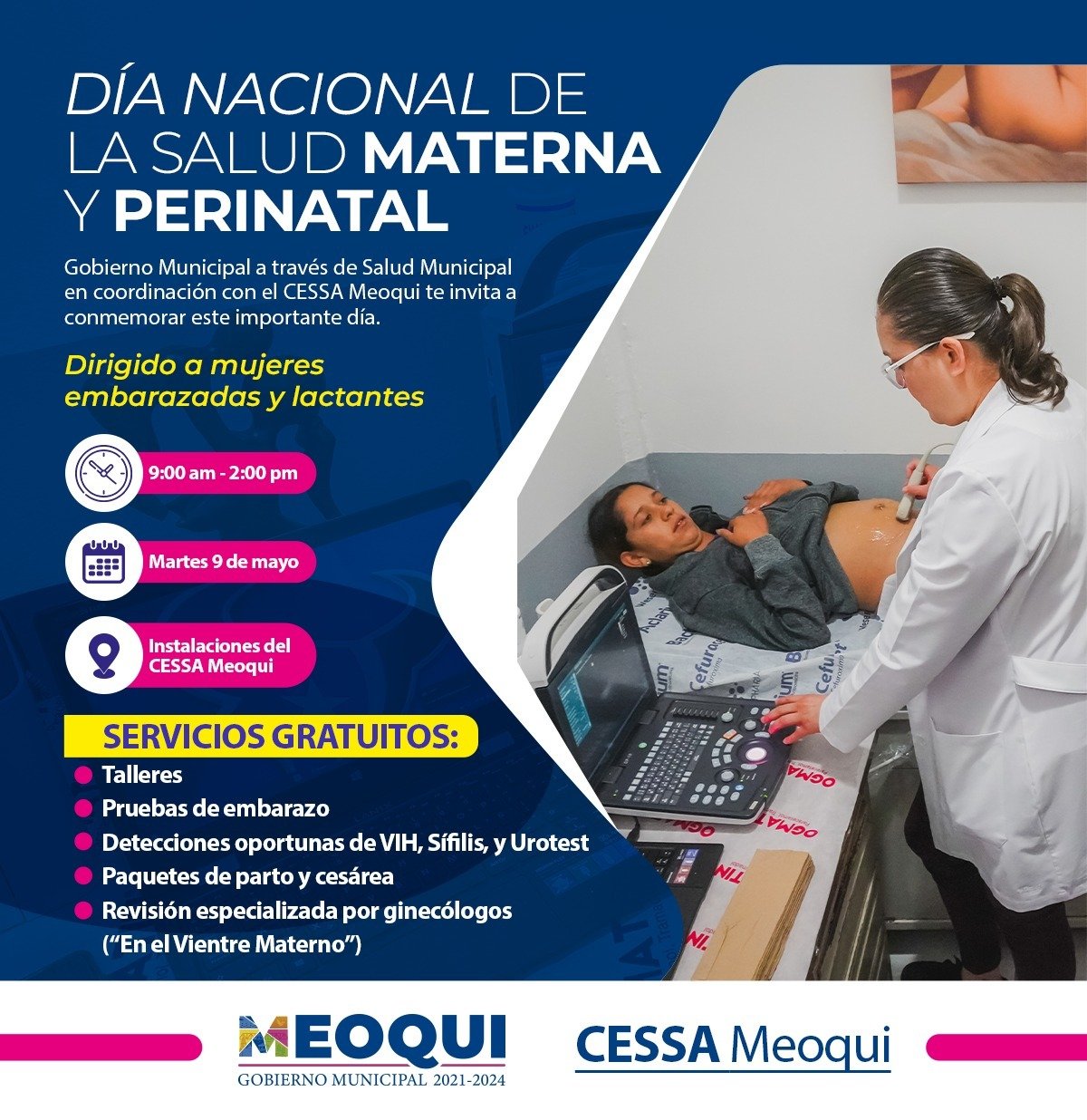 En Meoqui este martes se llevará a cabo la Feria de Salud Materna y Perinatal en el Centro de Salud de 9:00 AM a 2:00PM, donde se brindarán servicios gratuitos como pruebas de embarazo, detecciones oportunas de VIH, Sífilis, y Urotest, paquetes de parto y cesárea, entre otros, es por ello que el Gobierno Municipal a través de Salud Municipal en coordinación con el CESSA hacen extensiva la invitación a todas las mujeres.