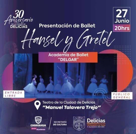 El Gobierno Municipal de Delicias invitó a la presentación de Ballet ‘Hansel y Gretel’ como parte del festejo por el 30 aniversario del Teatro de la Ciudad.