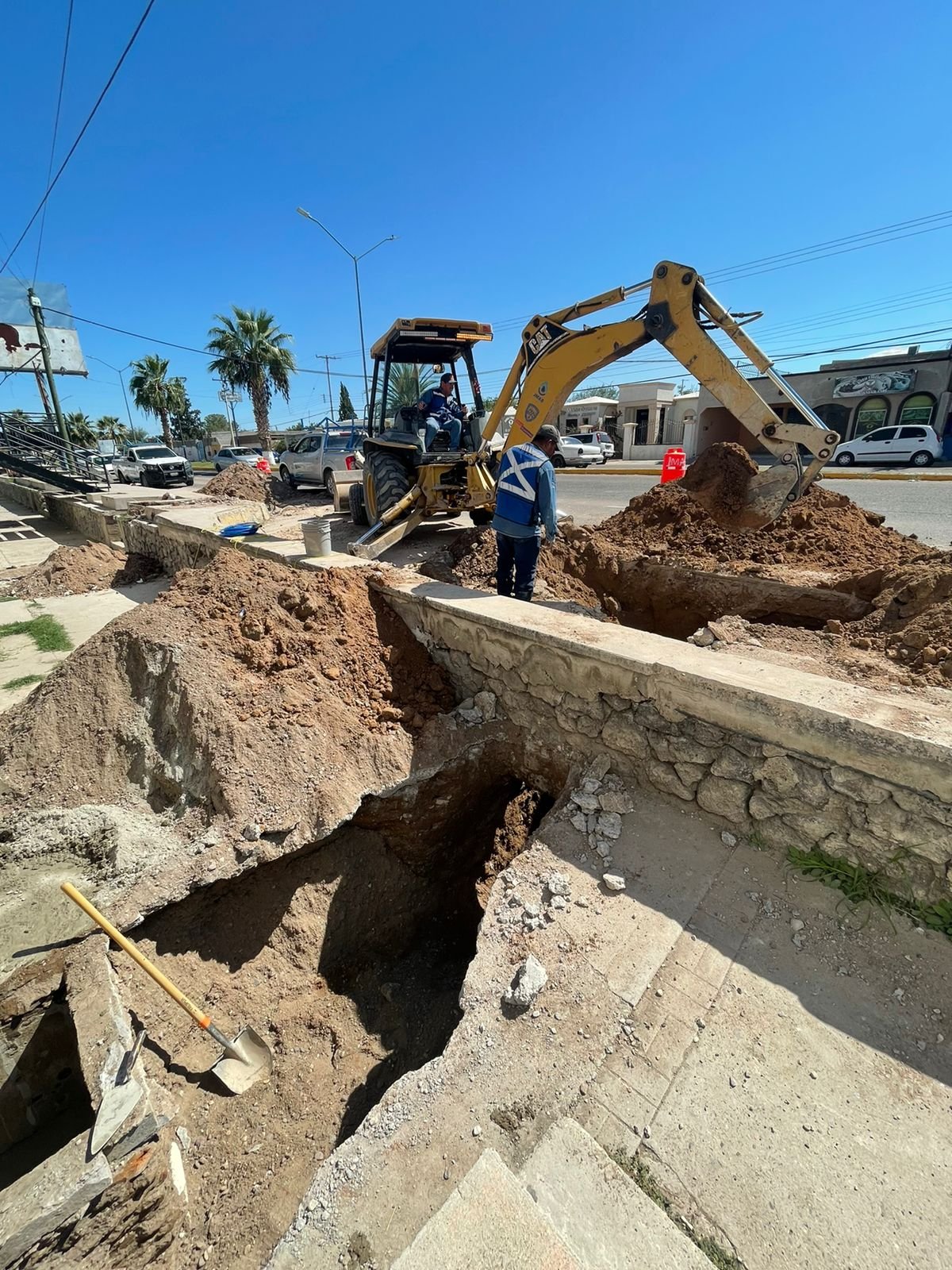 Se encuentran a la altura del Registro Civil, reubicando tomas y descarga de agua y drenaje.
