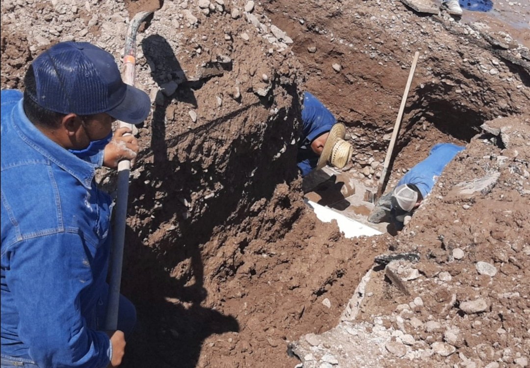 Mismo que ya se arregló, únicamente falta agregar el cemento para cubrir la zanja que se hizo por la reparación, personal de JMAS siguen trabajando para que todo pueda estar en perfecto funcionamiento.