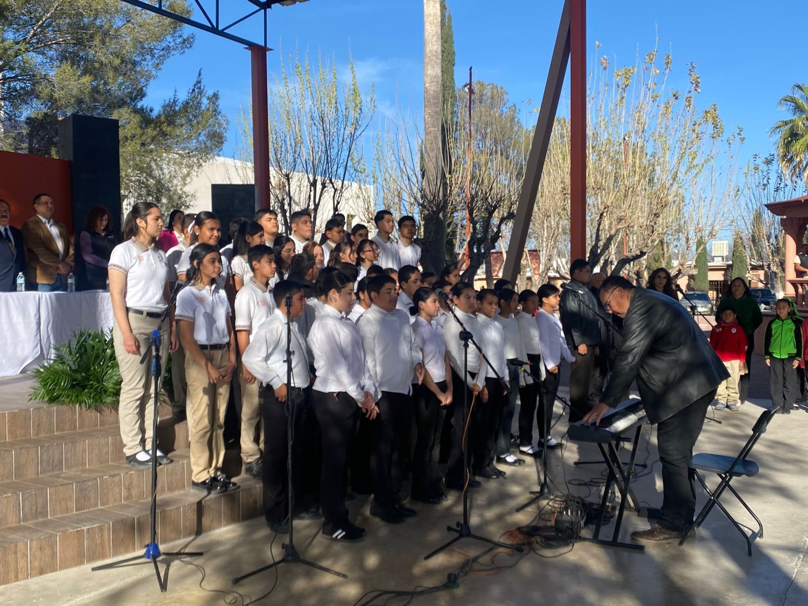 Los honores estuvieron a cargo de la banda de guerra y escolta de la escuela secundaria Escuela Secundaria Rodolfo Obregón Provencio, quienes encabezaron el acto cívico que reafirma la importancia de fortalecer los valores y la identidad nacional en las nuevas generaciones.