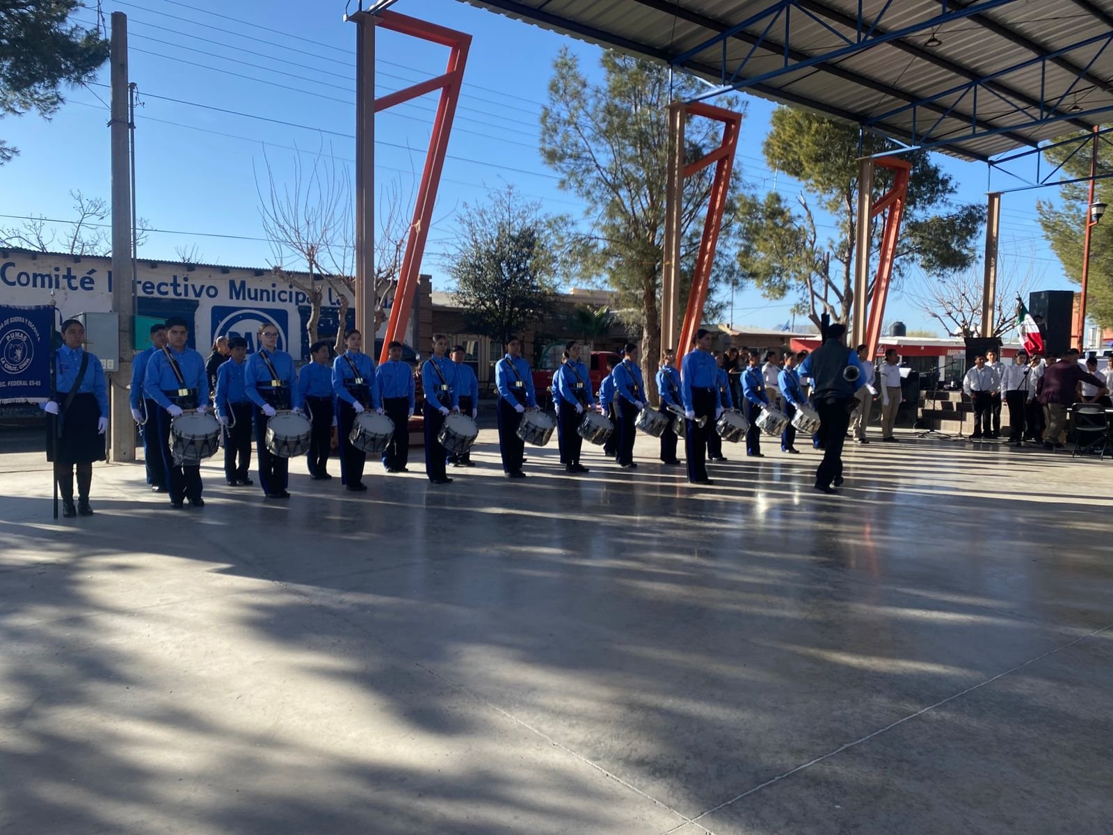 Los honores estuvieron a cargo de la banda de guerra y escolta de la escuela secundaria Escuela Secundaria Rodolfo Obregón Provencio, quienes encabezaron el acto cívico que reafirma la importancia de fortalecer los valores y la identidad nacional en las nuevas generaciones.