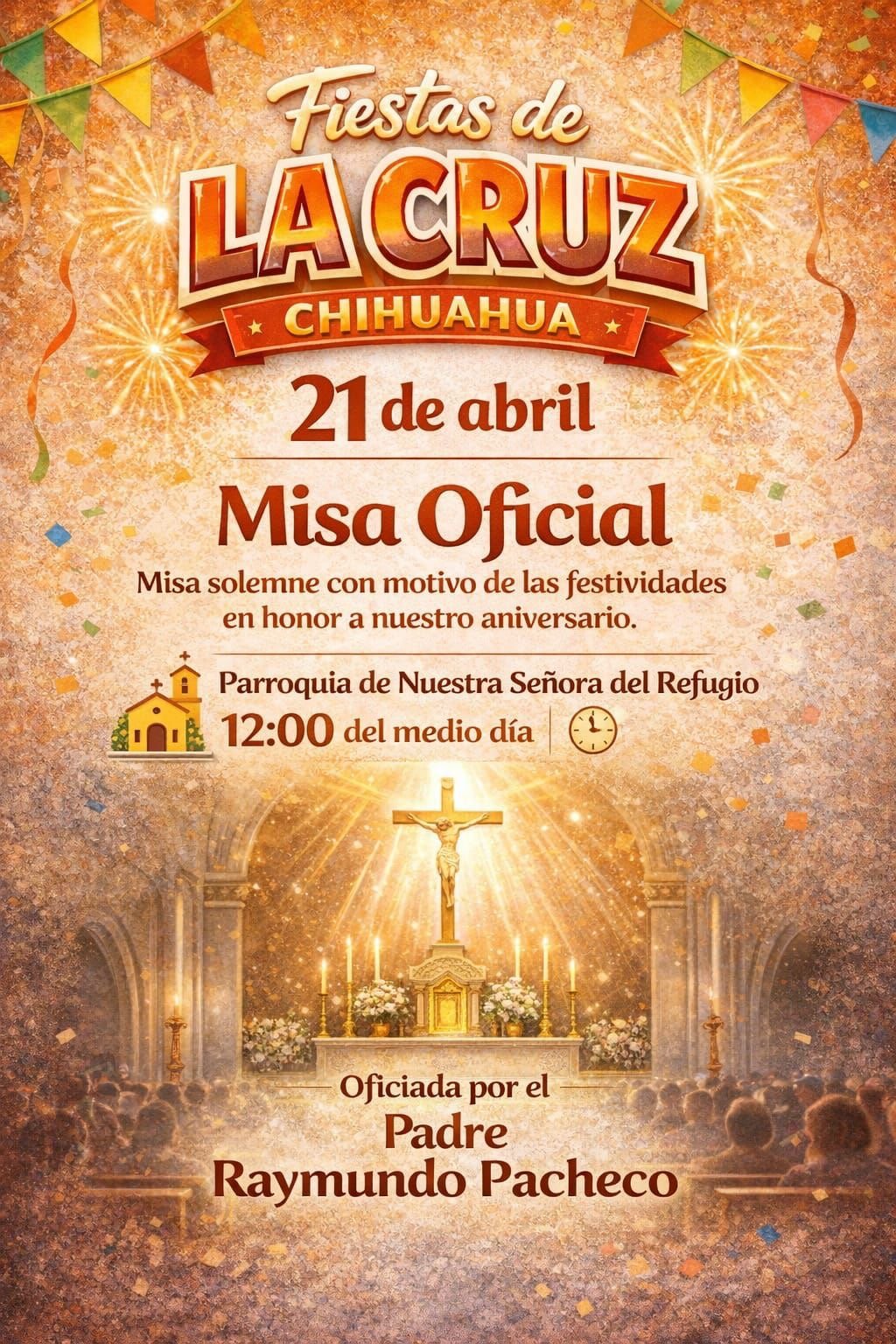 La ceremonia religiosa se realizará hoy en punto de las 12:00 del mediodía en la Parroquia de Nuestra Señora del Refugio oficiada por el Padre Raymundo Pacheco, donde se espera la participación de familias, autoridades y fieles en un ambiente de fe y unidad.