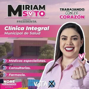 “Sabemos que es un tema muy retador, una Clínica Integral Municipal de Salud, que estará en la cabecera municipal, que contará con farmacia y también con servicio de especialidades, ya existen en Chihuahua Capital, por ello sabemos que la podemos implementar en Meoqui, y esto nos permite no dejar una construcción o un elefante blanco, sino realmente trabajar, la salud es un derecho para todos” así lo dijo la Arquitecta Miriam Soto, candidata por el PAN, PRI y PRD a la Presidencia Municipal de Meoqui en una reunión con personal de Salud.