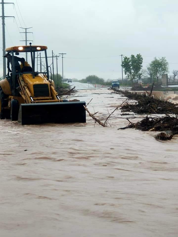 Marcial Márquez, alcalde de Rosales, dio a conocer a través de sus redes sociales que el puente Ortiz- Delicias está siendo limpiado de los arrastres que trajo la corriente.