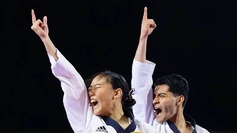La pareja mixta mexicana de Poomsae de taekwondo, integrada por William Arroyo y Seo Hyun Lee, ganó el oro panamericano con un total de 7 mil 920 puntos lo que significó el cuarto para su país en este deporte en Santiago 2023.