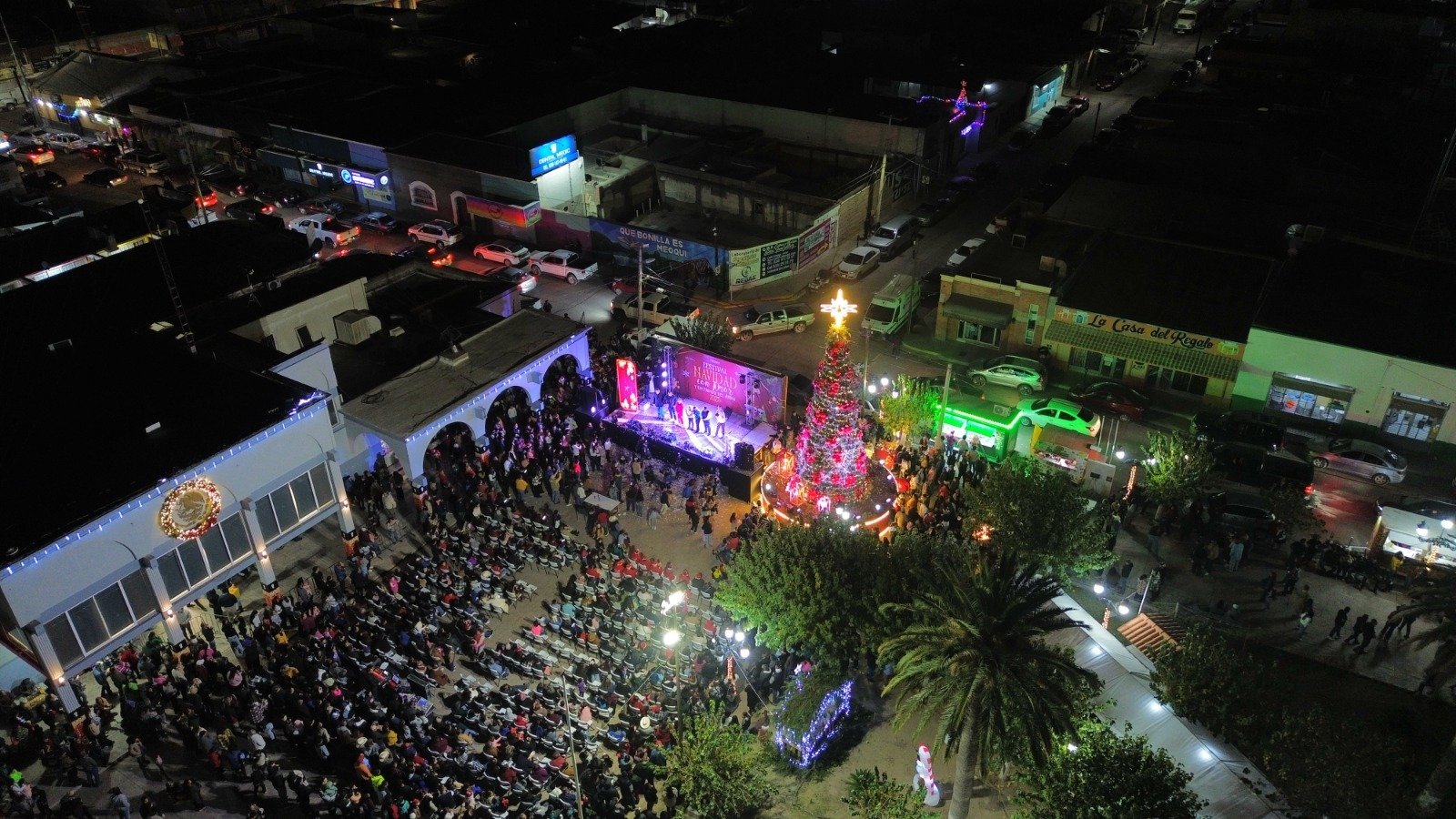 Llega la Navidad a Meoqui con el encendido del Árbol ante más de 3 mil personas