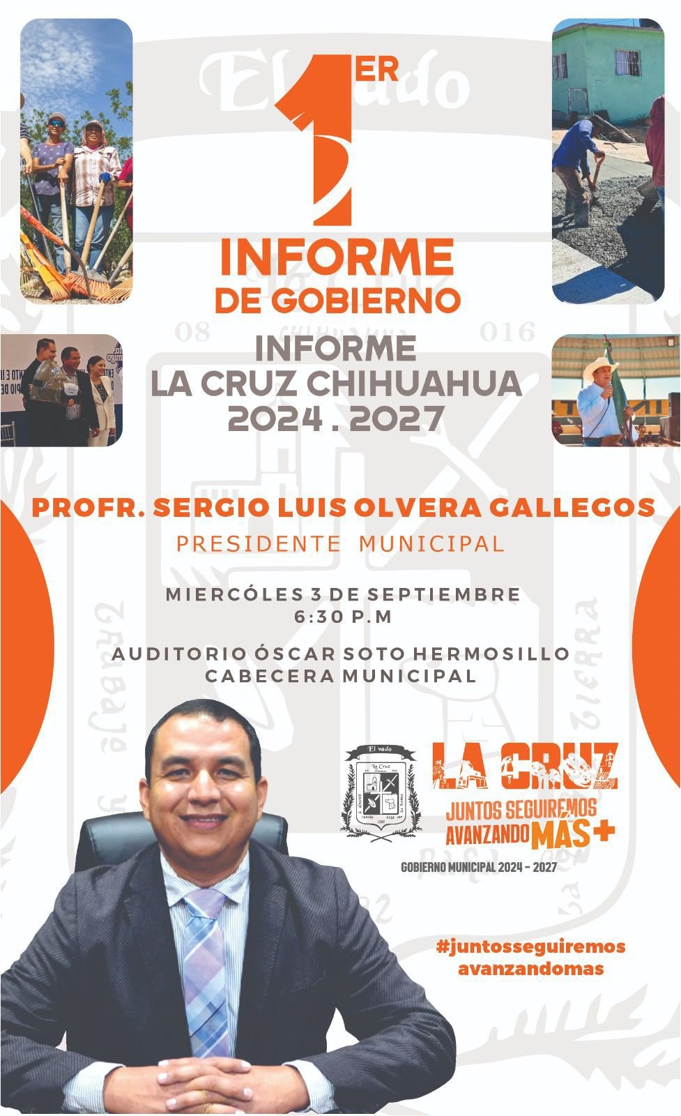 Después de un año de trabajo intenso y resultados palpables, hoy miércoles 3 de septiembre se llevará a cabo el Primer Informe de Gobierno del presidente municipal, Profr. Sergio Luis Olvera Gallegos.