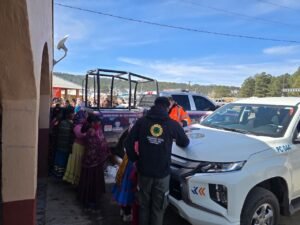 Personal de la Coordinación Estatal de Protección Civil llevó apoyos diversos a familias del poblado de El Vergel, municipio de Balleza, que resultaron afectadas por la tercera tormenta invernal de la temporada.