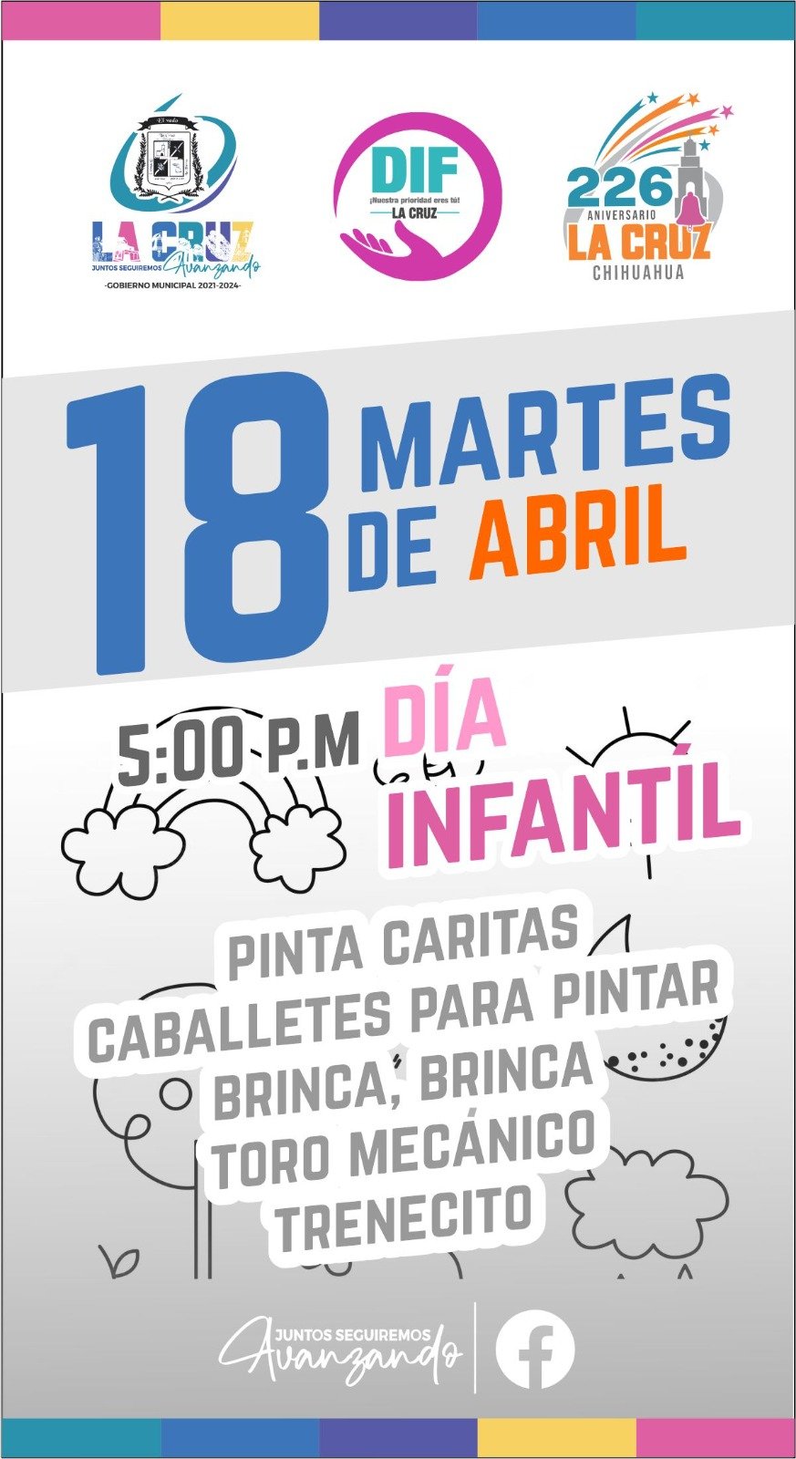 El día de mañana martes 18 de abril dentro del marco de los festejos del 226 aniversario se llevará a cabo un evento especial para nuestros pequeñines, mismo que es organizado por DIF municipal.