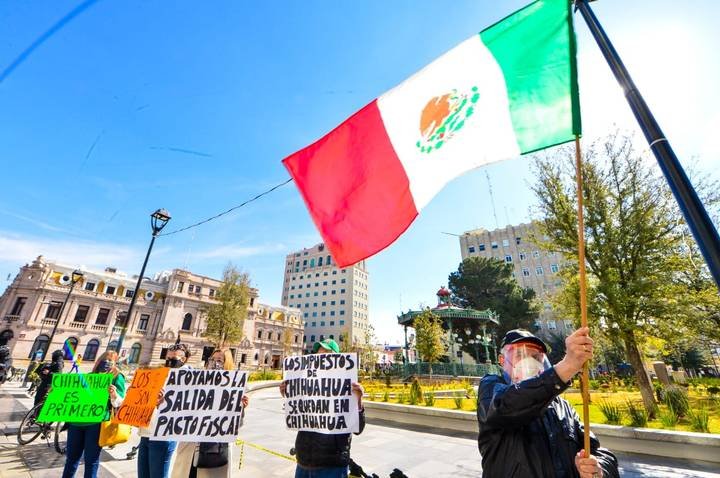 Manifestantes exigen la salida de Chihuahua del pacto fiscal