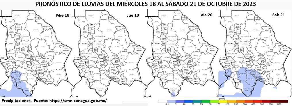 Según la información emitida por el Servicio Meteorológico Nacional (SMN), se prevé que las lluvias aisladas (de 0.1 a 2 mm) se presenten en partes de las zonas oeste y suroeste, que incluyen a Guazapares, Urique, Batopilas, Morelos, Guachochi y Guadalupe y Calvo.