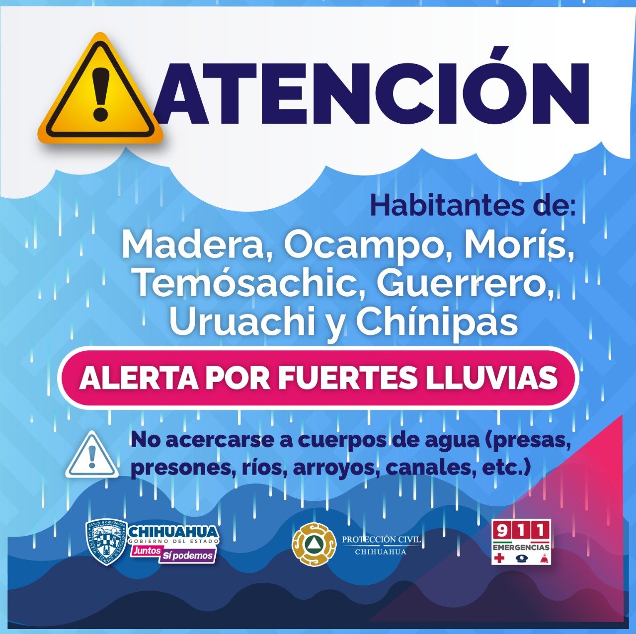 De acuerdo con el pronóstico que emite el Servicio Meteorológico Nacional (SMN), en las próximas horas persiste el potencial de lluvias en Madera, Ocampo, Morís, Temósachic, Guerrero, Uruachi y Chínipas, con acumulados previstos entre 25 a 50 milímetros (mm) de precipitación. Además, se prevé posible presencia de lluvia engelante en zonas altas de las serranías de los municipios mencionados.