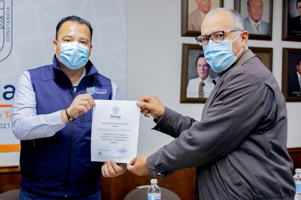 Este lunes el Presidente Municipal de Delicias, Jesús Valenciano, tomó protesta al arquitecto Marco Antonio Baeza García, como nuevo presidente del Consejo de Ordenamiento Territorial y Desarrollo Urbano, antes COPLUM.