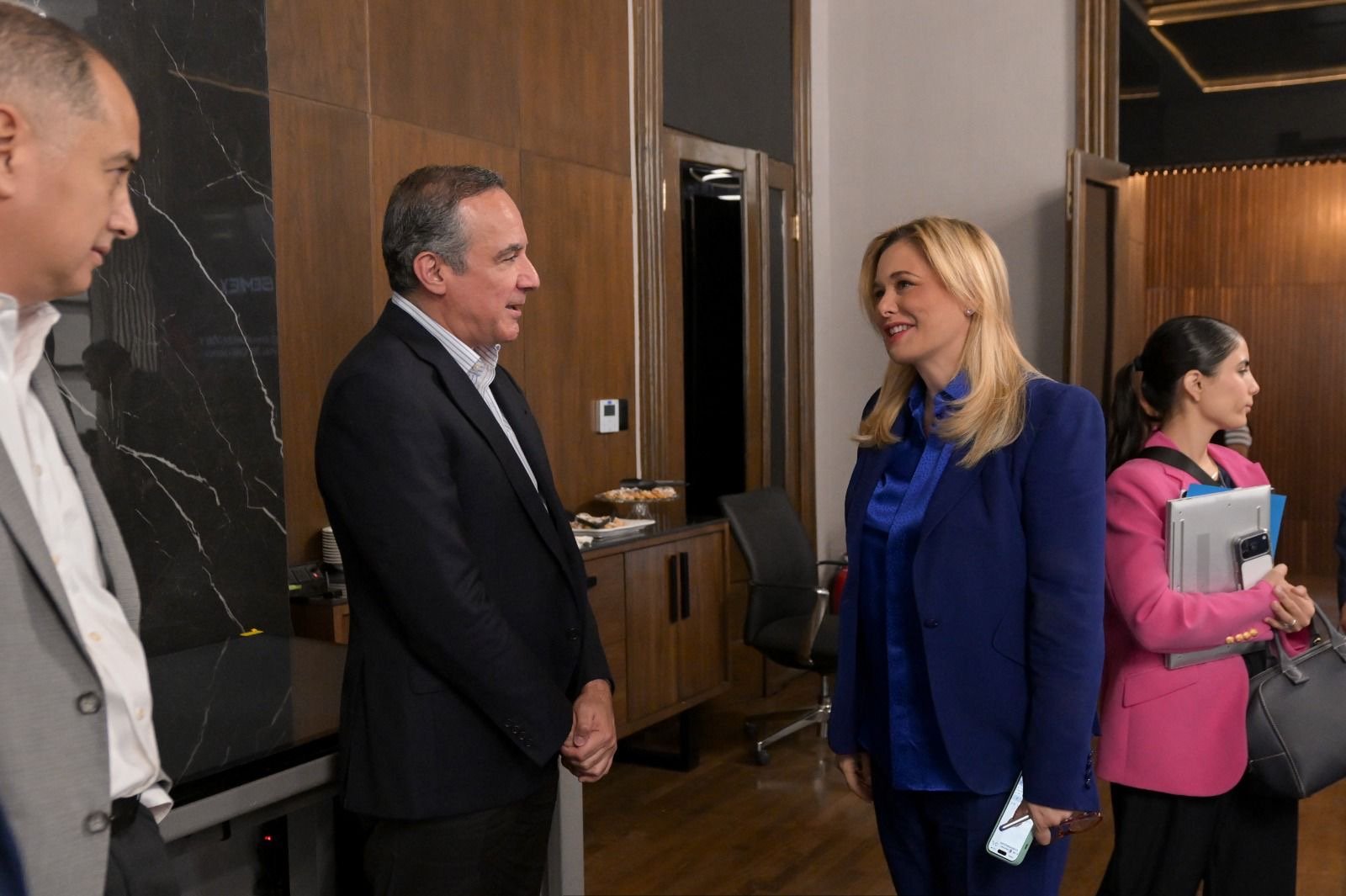 También acudieron Leopoldo Mares, presidente del Consejo Coordinador Empresarial de Chihuahua; Arturo Luján, director de Fundación Ficosec; Adrián Galván y Alejandro Brunel, de Semex; Jorge Cruz y Oliver Torres, presidente y director de Desarrollo Económico del Estado de Chihuahua (Desec), respectivamente, entre otros.