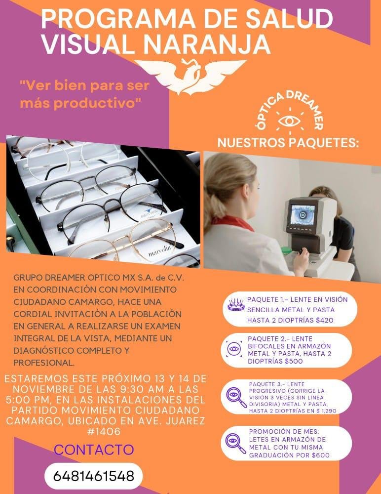 Movimiento Ciudadano Camargo en conjunto con Grupo Dreamer Óptico, invitan a la población en general a la campaña “Ver bien para ser más productivo”