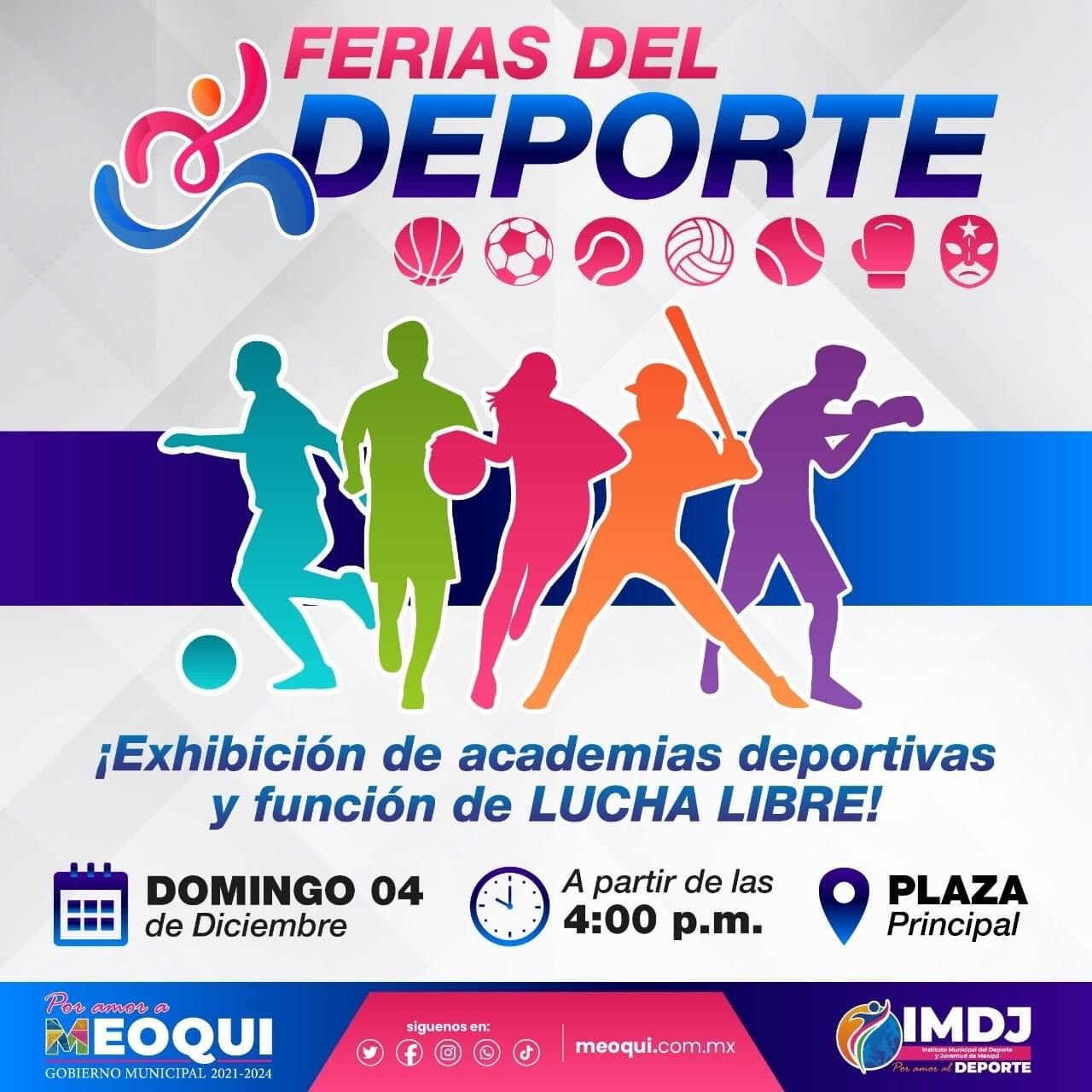 Con presentaciones de distintas disciplinas deportivas, desfile y una exhibición de lucha libre de nivel nacional, este domingo en Meoqui se llevarán a cabo las Ferias del Deporte, esto con el objetivo de impulsar este rubro en el municipio y que las distintas academias y clubes se den a conocer.