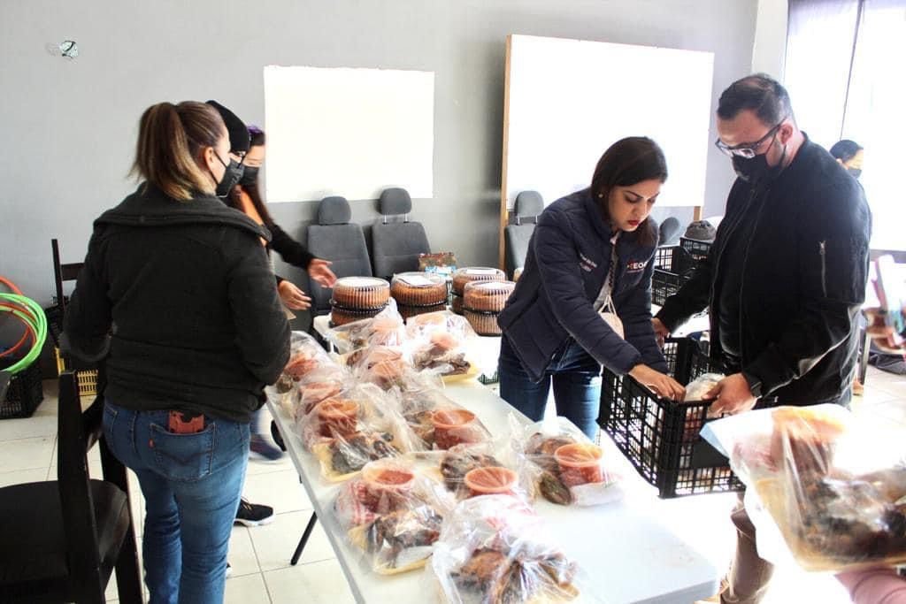 La alcaldesa de Meoqui, Miriam Soto en conjunto con varios colaboradores del municipio estuvieron entregando 200 cenas navideñas en varias comunidades.