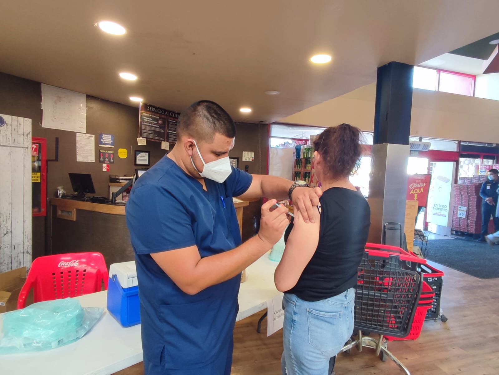 Enfermeros del IMSS informaron que se encuentran aplicando la vacuna de la influenza en la tienda Alsuper.