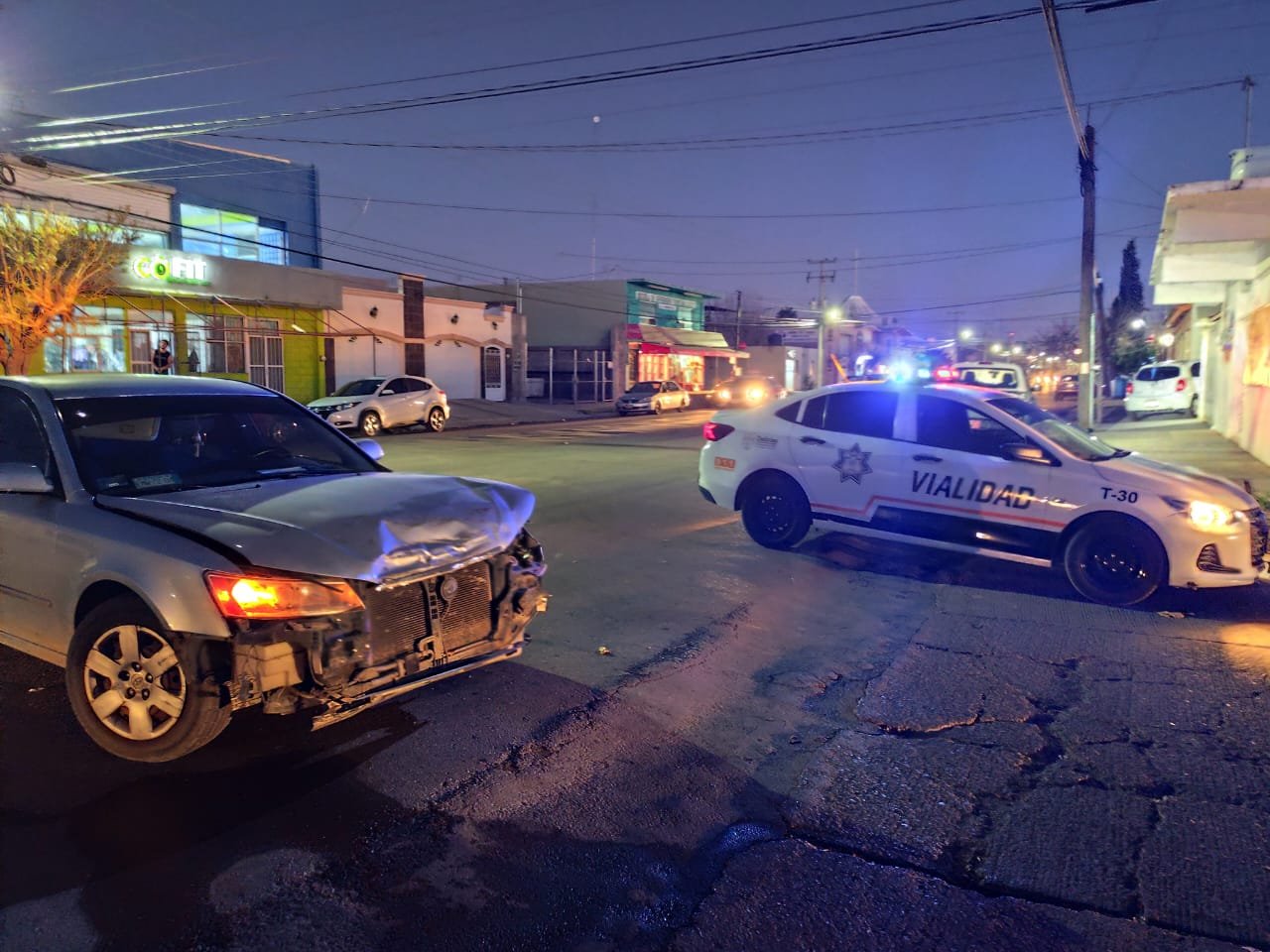 El vehículo transitaba en dirección de Sur a Norte y al llegar a la intersección antes mencionada, giró a la izquierda pero la motocicleta deportiva, que viajaba a exceso de velocidad en la dirección norte a sur omitió el alto e intentó esquivar el vehículo ocasionando daños considerables en la parte frontal del Hyundai.