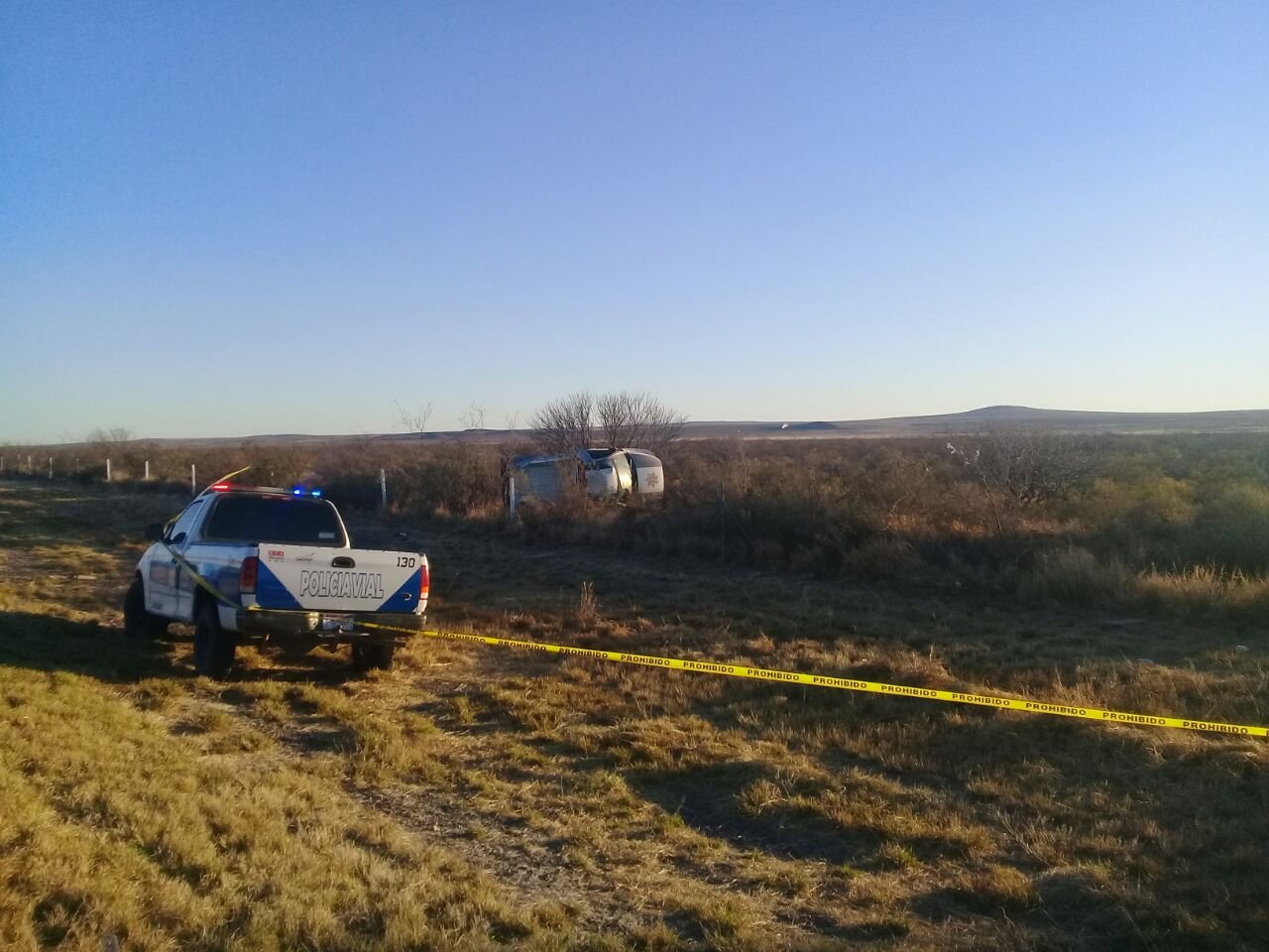 CAMARGO.- Agentes de la Policía Estatal volcaron en el kilómetro 40 de la carretera a Jiménez esta tarde. Fueron 3 policías los que abordaron el vehículo el cual según fuentes extra oficiales iba a exceso de velocidad.