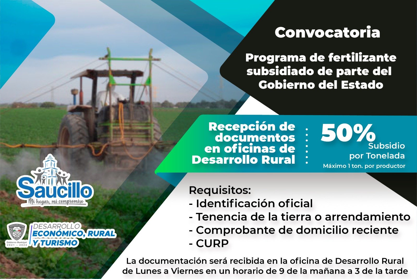 “Agradecemos al secretario Mauro Parada y al director de Agricultura en la Secretaría de Desarrollo Rural Arturo zubia, en el cual nos han atendido y han hecho eco a esta necesidad de los productores saucillenses, este programa de fertilizantes consiste del apoyo del 50% del costo total de hasta una tonelada en el cual se solicita que la persona pueda comprobar con 10 hectáreas para que pueda alcanzar el máximo del apoyo, en su caso, si tiene menos se apoyara con 100 kilos por hectárea”, expresó Rea Hernández.