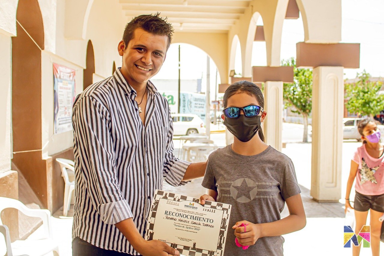 Alrededor de 20 personas disputaron el Torneo Sabatino de Ajedrez en Meoqui, del cual resultaron campeones Nallely García en la categoría infantil, Diego Luna en Juvenil e Iván Calderón en Primera Fuerza, quienes recibieron su premiación de estos encuentros disputados en los portales de Presidencia Municipal.