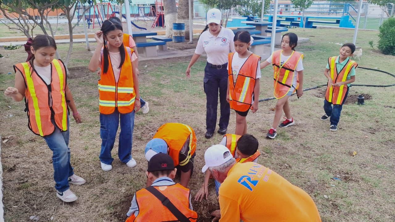 Niñas y niños de brigada infantil participan en reforestación en Naica; Fito Gardea reconoce su compromiso ambiental
