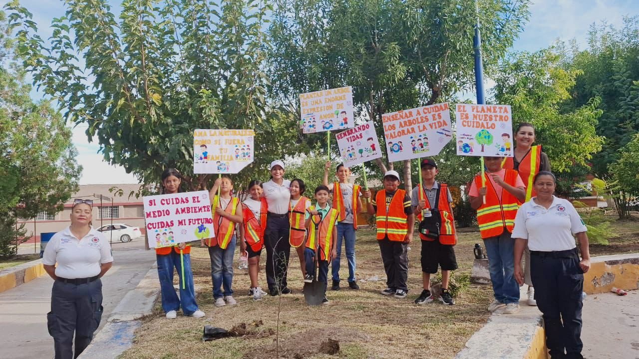 La actividad, desarrollada en coordinación con personal de Protección Civil, la presidenta seccional Sara Ofelia Chavira Holguín y padres de familia, se llevó a cabo en la plaza principal de Naica, donde los niños plantaron diferentes especies de árboles, reafirmando el compromiso comunitario con la preservación del medio ambiente.