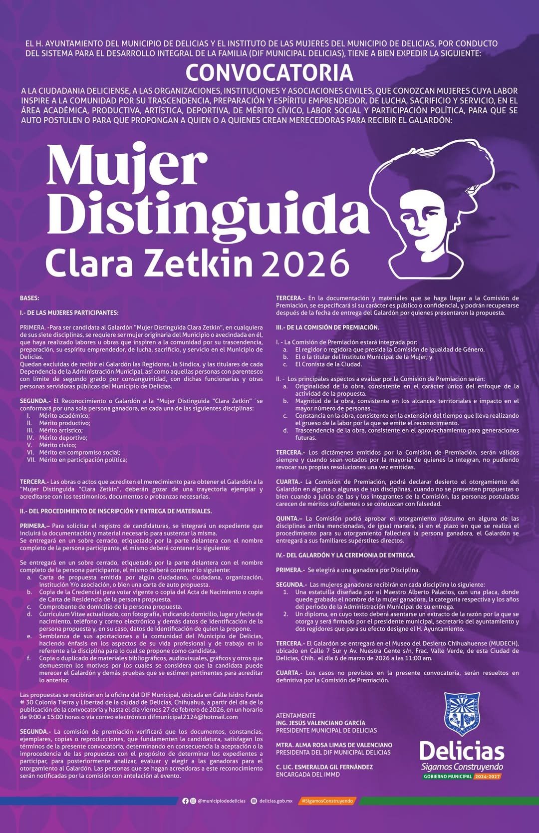 Las bases de la convocatoria ya se encuentran disponibles para su consulta, y el DIF exhorta a la población a participar activamente en este proceso de reconocimiento a quienes representan, con su trayectoria, el corazón y la fuerza de Delicias.
