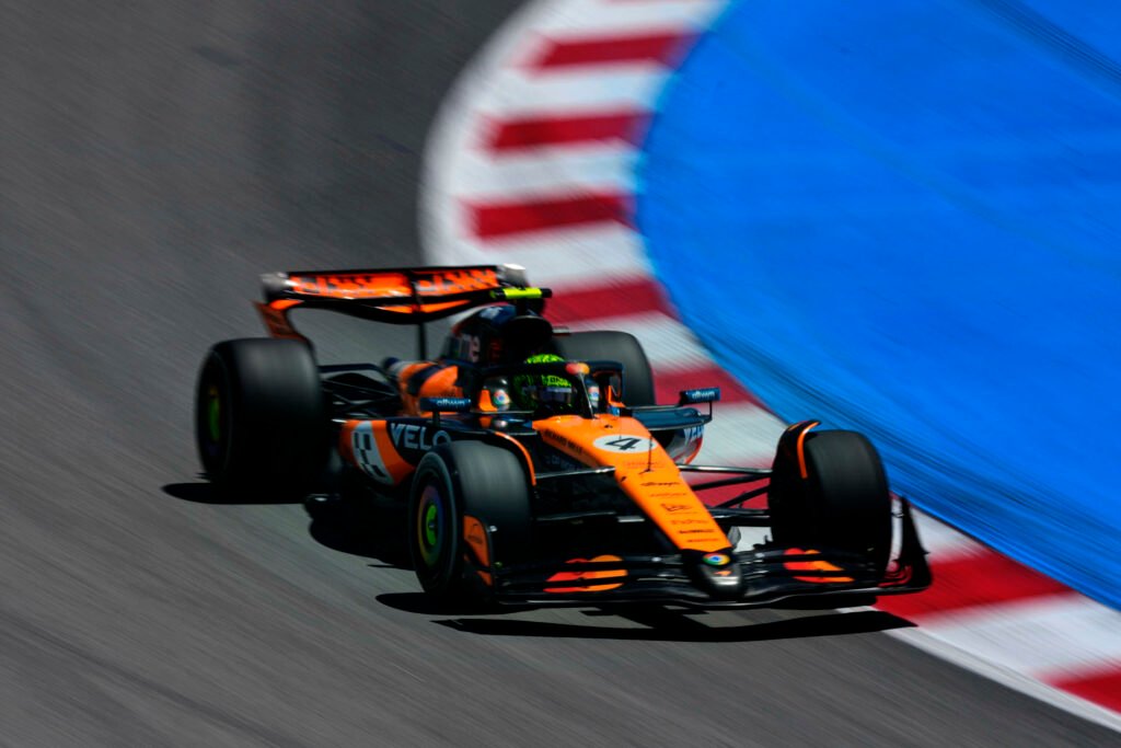 El inglés Lando Norris (McLaren) fue el más rápido, por delante del neerlandés Max Verstappen (Red Bull), en el primer libre para el Gran Premio de España, el noveno del Mundial de F1, que se disputa en el circuito de Montmeló (Barcelona); donde los españoles Fernando Alonso (Aston Martin) y Carlos Sainz (Williams) marcaron el decimotercer y el decimoquinto tiempo, respectivamente; y el argentino Franco Colapinto el vigésimo.
