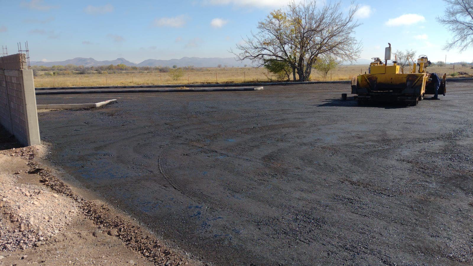 Informaron que el equipo de obras públicas se encuentra realizando la colocación de banquetas y tirado de carpeta.