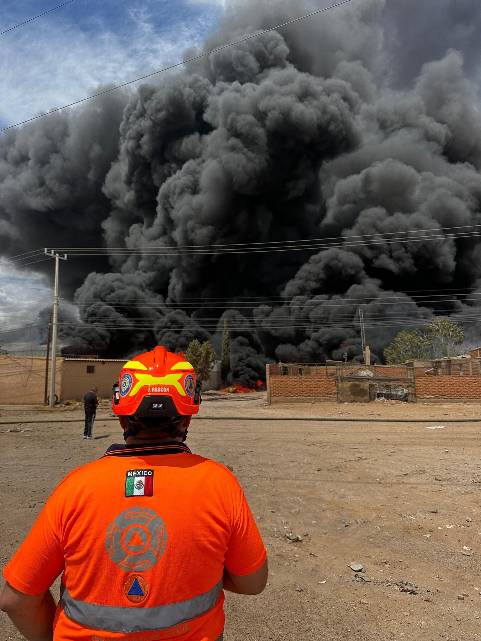 Ante la densa columna de humo generada, se emite una alerta preventiva a la población de colonias cercanas, a quienes se recomienda mantener puertas y ventanas cerradas, utilizar cubrebocas en exteriores y sellar rendijas con paños húmedos, con el fin de reducir riesgos a la salud.