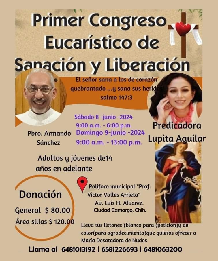 El padre Armando Sánchez, párroco de San Isidro Labrador, invita al Primer Congreso Eucarístico de Sanación y Liberación próximo a realizarse el día de mañana 8 de junio y concluyendo el domingo 9 en las instalaciones del Poliforo Municipal.
