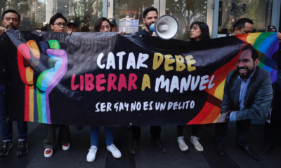 Colectivos LGBTI y familiares protestaron este lunes en la Embajada del Reino Unido en México para exigir que ambos países intercedan por Manuel Guerrero, un hombre...
