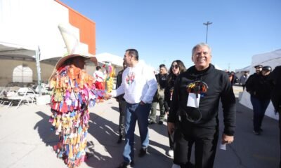 Previo al arranque del Segundo Gran Desfile Conmemorativo de Ciudad Juárez, el Presidente Municipal, Cruz Pérez Cuéllar y su esposa y titular del DIF, Rubí Enríquez,...