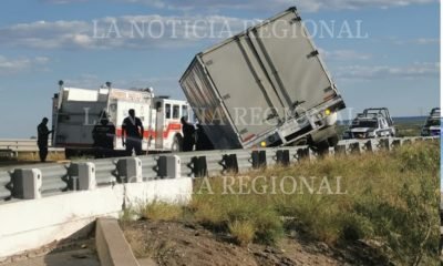Dos camiones de carga protagonizaron un aparatoso choque con volcadura en lo alto del puente de Estación Conchos, dejando un conductor lesionados leve y daños de...