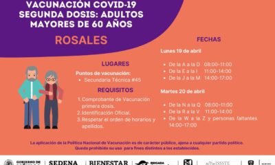 Este lunes comienza la campaña de vacunación de la segunda dosis anticovid para adultos mayores en el municipio de Rosales. El lunes 19 los adultos que...