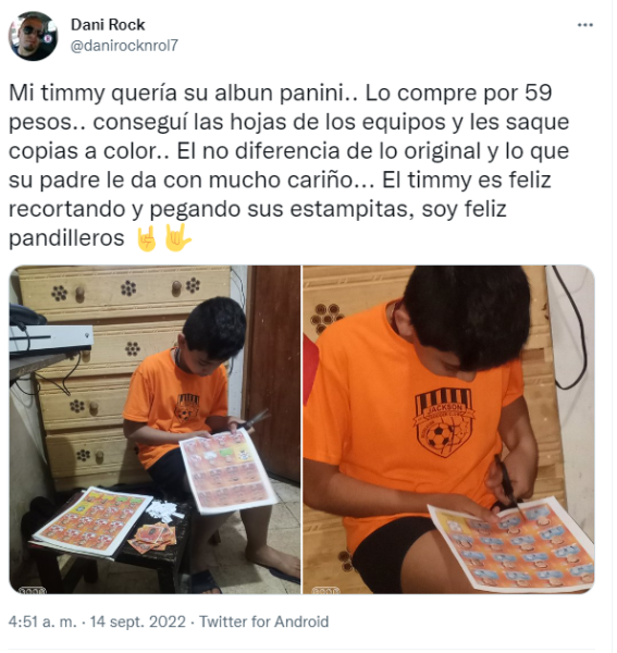 Papá cumple sueño de su hijo y le imprime estampas del mundial por falta de dinero