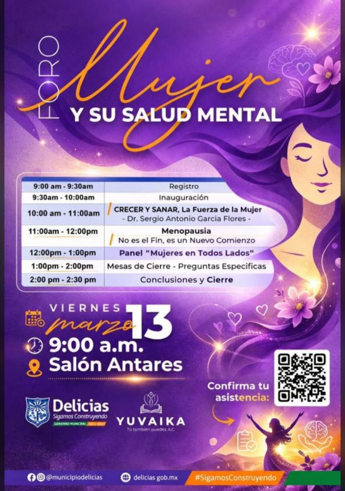 La Presidencia Municipal de Delicias invitó a la ciudadanía a participar en el foro “Mujer y su Salud Mental”, un espacio de reflexión enfocado en el bienestar emocional y el fortalecimiento personal de las mujeres.