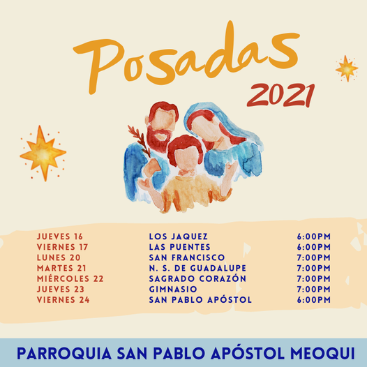 La Parroquia San Pablo Apóstol de Meoqui informó que este día se inicia con la celebración de las posadas por lo que invitó a los feligreses a acompañarlos.