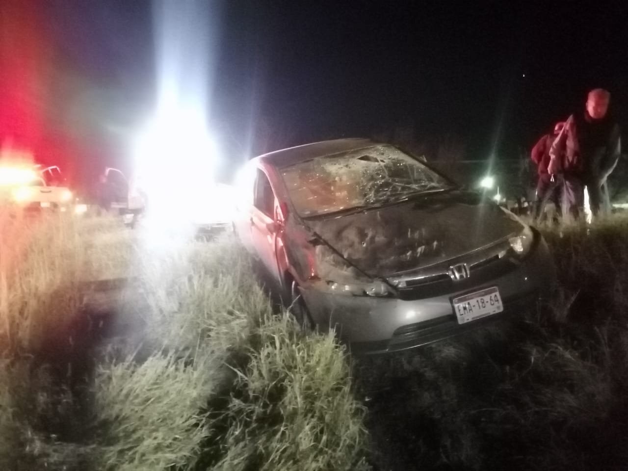 El vehículo se trata de un Honda Gris modelo 2012 con placas del estado de Chihuahua EMA1864, en cual viajaban un hombre mayor y una mujer joven quienes resultaron ilesos.