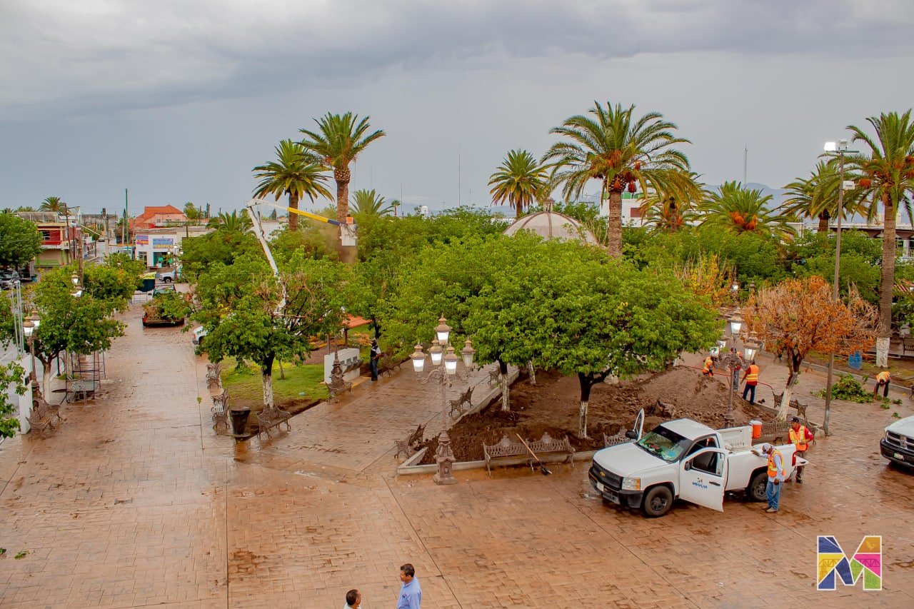 Noe Legarreta, director de Servicios Municipales, dio a conocer que se están trabajando en la reforestación, implementación de riego por aspersión, colocación de plantas de ornato, poda estética, cordón jardinero que será rellenado con ensolve para elevar y proteger las raíces expuestas de los árboles existentes, mencionando que la instrucción de alcaldesa es embellecer y mantener en óptimas condiciones los espacios de las familias meoquenses.