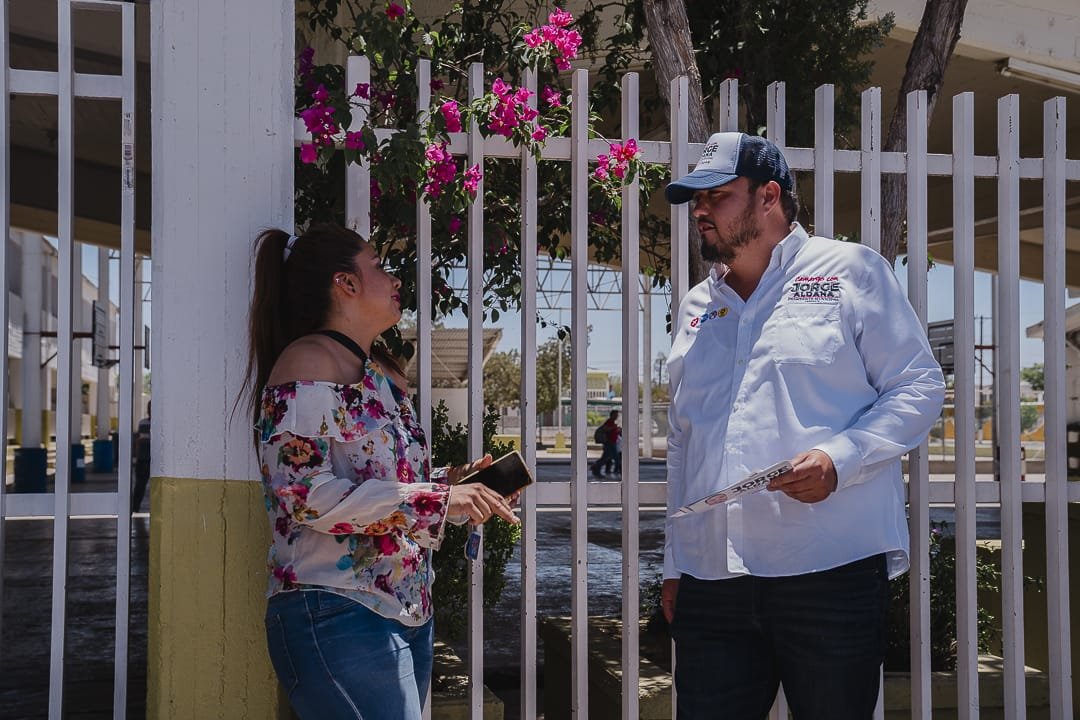 Jorge Aldana, candidato del PAN-PRI-PRD a la Presidencia Municipal de Camargo, ha visitado varias escuelas del municipio para llevar sus propuestas a la entrada o salida y dialogar con padres y madres de familia así como con maestros.
